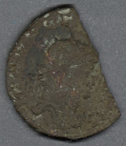Moneda acuñada por el emperador Galieno. Pieza con muesca de aproximadamente el 25% que no afecta la identificación. Anverso con el busto radiado del emperador Galieno mirando a la derecha, leyenda parcialmente visible "GALLIE(NVS AVG)" y borde de puntos. Reverso con un ciervo a la izquierda, leyenda parcialmente visible "D(IANAE CONS) AVG", en el exergo "X" y borde de puntos. Fabricada por acuñación a martillo, peso de 1,6 gr.
