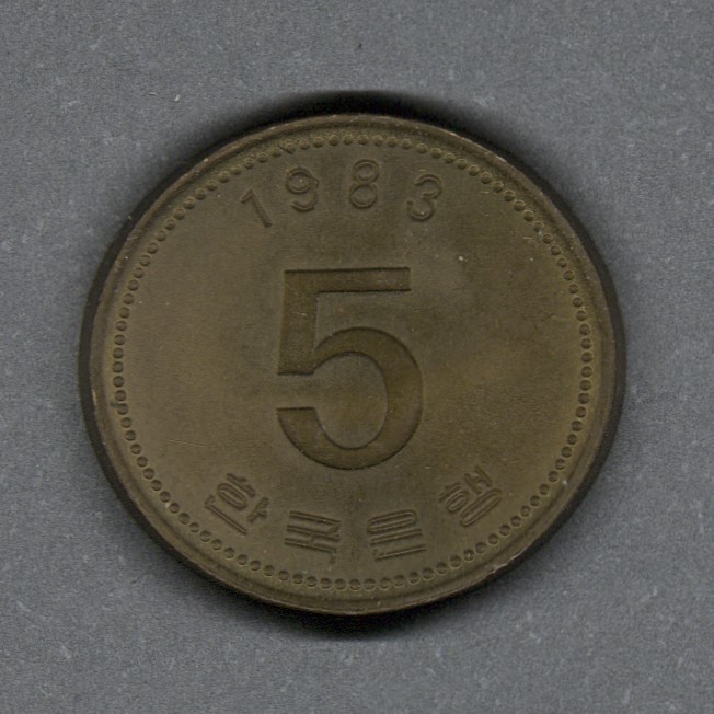 | Moneda de latón. Casa de moneda Korea Minting and Security Printing Corporation, Daejeon, Corea del Sur (1951-presente). |