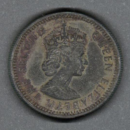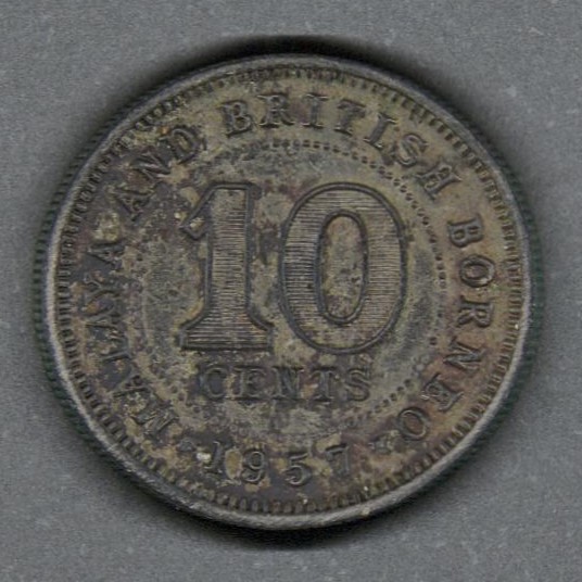 Monedas circulantes normales de Federación malaya y Borneo británico. En anverso retrato de la reina Elizabeth II coronada, mirando a la derecha. En reverso valor y año de la moneda.