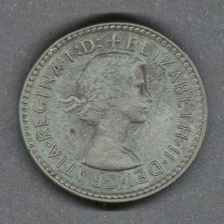 | Moneda de plata. Casa de moneda Royal Mint, Melbourne, Australia (1872-1969). |