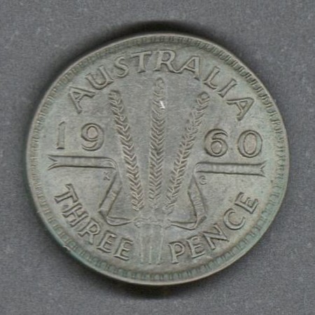 Monedas circulantes normales de Australia. En anverso primer retrato de la reina Isabel II mirando a la derecha con un laurel. En reverso tres tallos de trigo dividen la fecha, valor de la moneda, debajo.
