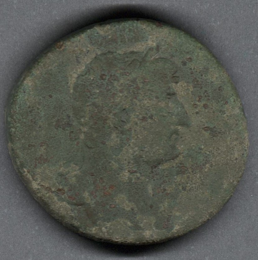 | Moneda de oricalco acuñada en la ceca de Roma |