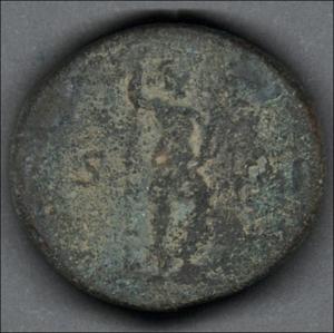 | Moneda de oricalco acuñada en la ceca de Roma |