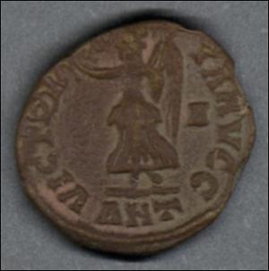 | Moneda de bronce acuñada en la ceca de Antioquía |