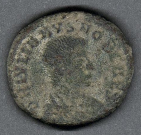 | Moneda de bronce acuñada en la ceca de Siscia, actual Sisak en Croacia |