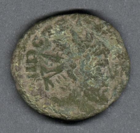 Pieza en estado de conservación regular, por lo que no es posible una identificación exacta, se propone una descripción tentativa a partir del tipo general y se sugiere mayor investigación. Moneda acuñada por el emperador Tétrico I como Augusto en el llamado "Imperio galo", una de las escisiones del Imperio romano durante la crisis del siglo tercero. Anverso con el busto radiado del emperador Tétrico drapeado sobre la coraza y mirando a la derecha, leyenda parcialmente visible "IMP C TE(TRICVS P F AVG)" y borde de puntos. Reverso con alto nivel de desgaste. Fabricada por acuñación a martillo, peso de 1,8 gr.