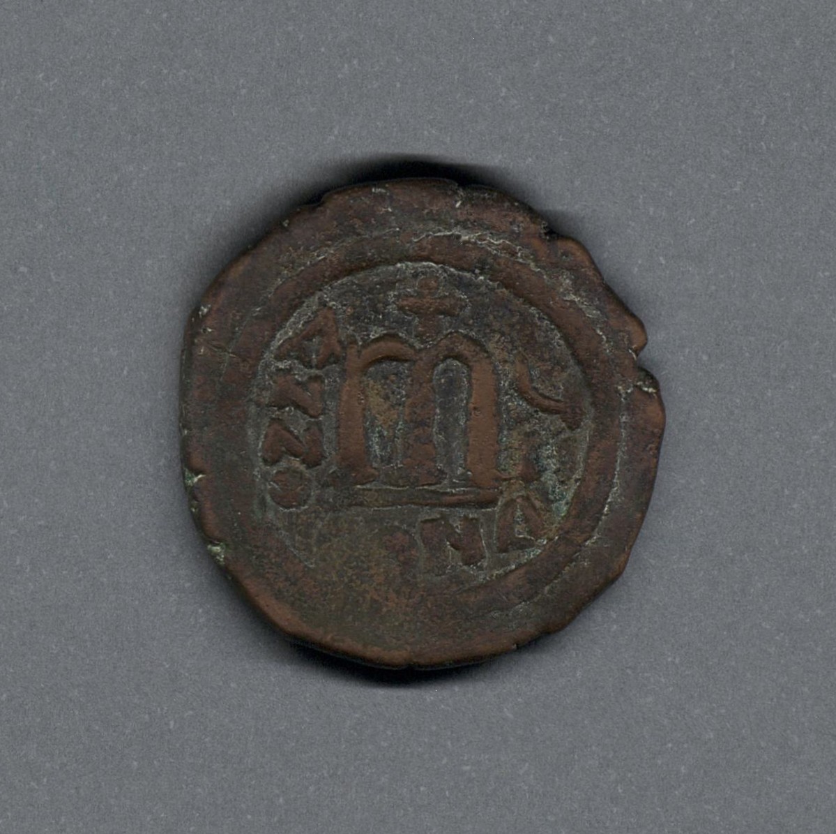 | Moneda de bronce acuñada en la ceca de Constantinopla, actual Estambul en Turquía |