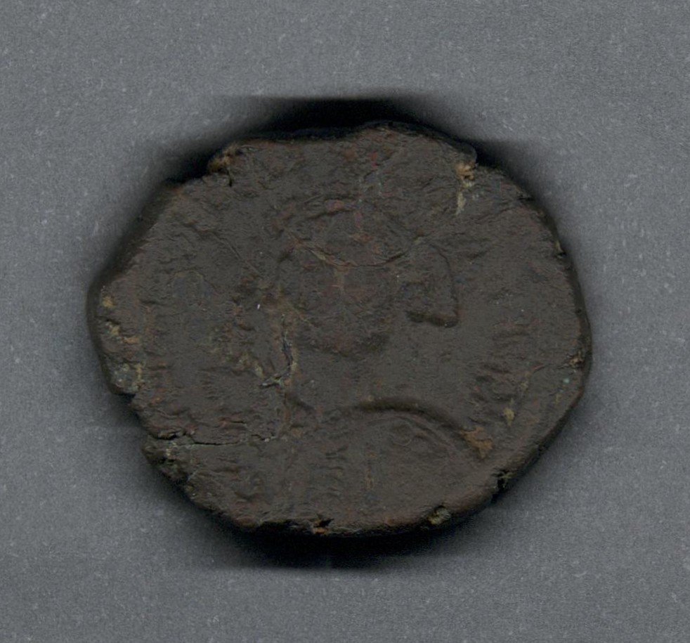 | Moneda de bronce acuñada en la ceca de Nicomedia, actual Izmit en Turquía |