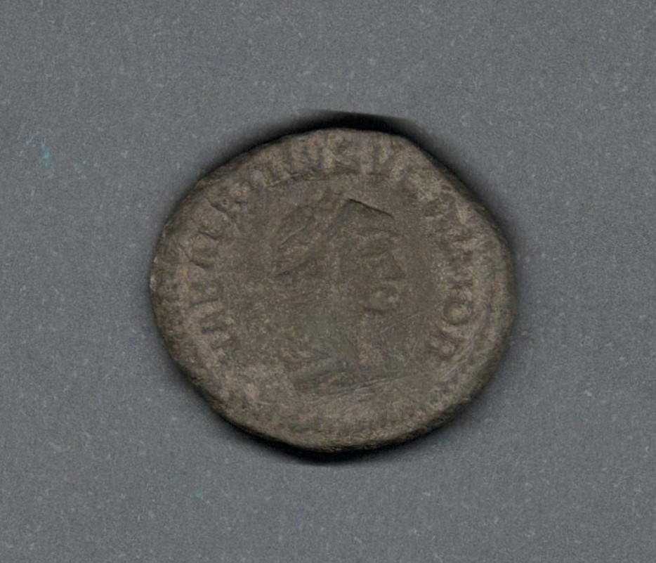 | Moneda de vellón o plata devaluada acuñada en la novena oficina de Antioquía de Siria, actual Antioquía en Turquía |