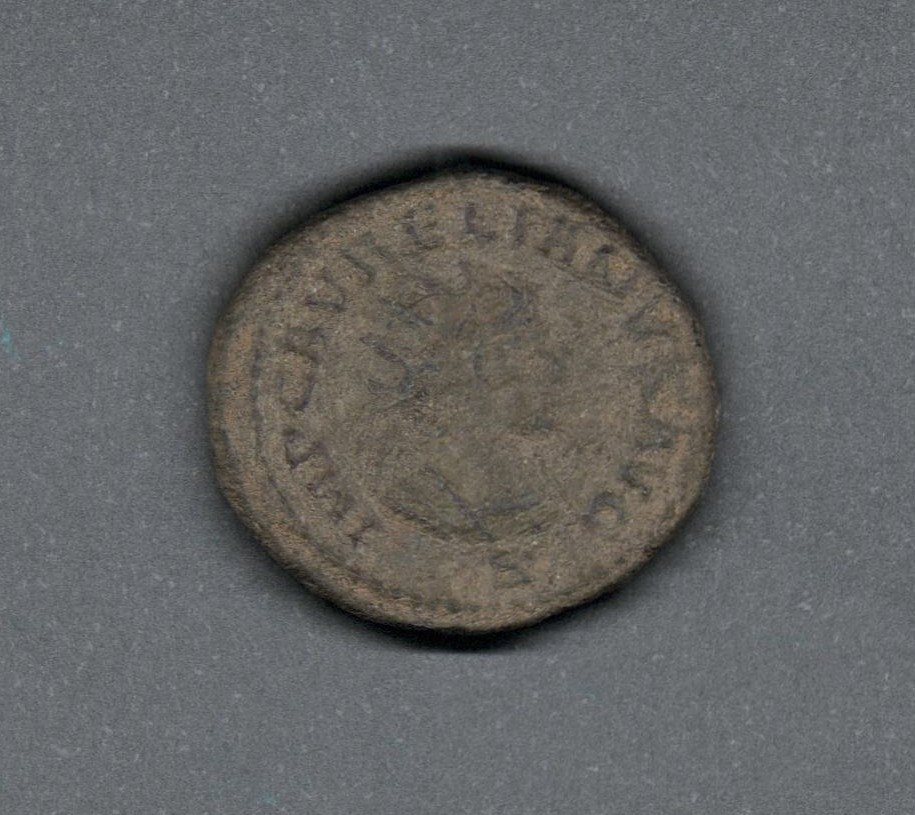 Moneda acuñada en conjunto por el emperador Aureliano y el rey de Palmira, Vabalato, durante el periodo temprano de buenas relaciones (271-272 d.C.). Anverso con el busto laureado del rey Vabalato, drapeado sobre la coraza y mirando a la derecha, leyenda ligeramente desgastada "VABALATHVS VCRIMDR" y borde de puntos. Reverso con el busto radiado del emperador Aureliano, llevando coraza y mirando a la derecha, leyenda "IMP C AVRELIANVS AVG", "S" en el exergo y borde de puntos. Fabricada por acuñación a martillo, peso de 4,1 gr.