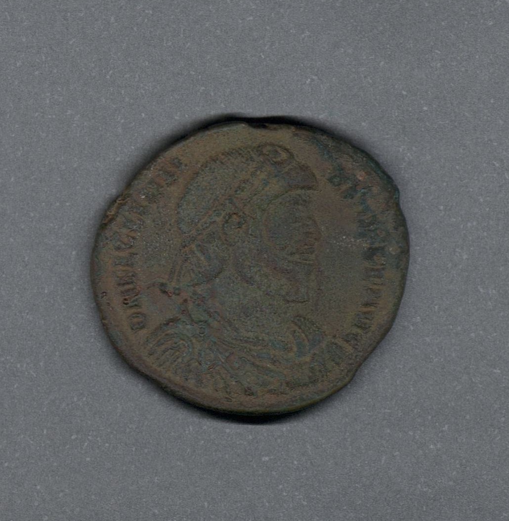 Moneda acuñada por el emperador Juliano II, el Apóstata, como Augusto único. Anverso con el busto del emperador Juliano II con barba, llevando diadema de perlas y drapeado sobre la coraza, leyenda "D N FL CL IVLI-ANVS P F AVG" y borde de puntos. Reverso con un toro a la derecha con dos estrellas de seis puntas arriba, leyenda desgastada "(SECVRITAS REIPVB)", en el exergo "CVZ(Γ)" y borde de puntos. Fabricada por acuñación a martillo, peso de 6,0 gr.
