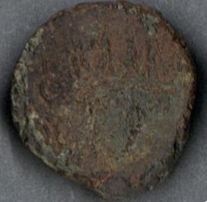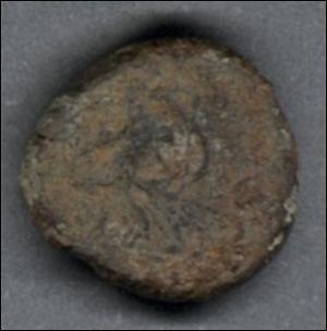 Pieza en mal estado de conservación, por lo que no es posible una identificación exacta y se propone una descripción general a partir del tipo, también se sugiere mayor investigación. Moneda probablemente acuñada como antoniniano muy devaluado dentro de alguna de las escisiones del imperio romano durante la crisis del siglo tercero o irregularmente como "radiado bárbaro" en los márgenes del imperio. Anvero con el busto radiado del emperador mirando a la derecha, leyenda ilegible. Reverso con una figura drapeada avanzando a la izquierda. Cospel con irregularidades. Fabricada por acuñación a martillo, peso de 1,6 gr.