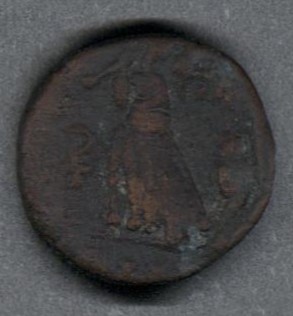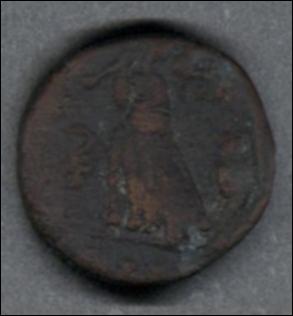 | Moneda de bronce acuñada en la ceca de Alejandría, Egipto |