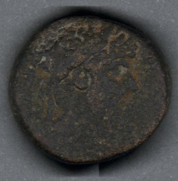 Pieza en estado de conservación regular, por lo que no es posible una identificación exacta, se propone una descripción tentativa a partir del tipo general y se sugiere mayor investigación. Moneda acuñada durante la dinastía antonina, posiblemente por Marco Aurelio o Lucio Vero. Anverso con el busto laureado del emperador mirando a la derecha, leyenda ilegible. Reverso con una corona de laurel, leyenda "S C" y borde de puntos. Pieza posiblemente recortada (clipped), peso de 10,0 gr.