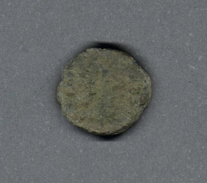 Pieza en estado de conservación regular, lo que no impide su identificación exacta. Moneda acuñada por el emperador Anastasio I, después de la reforma monetaria. Anverso mayormente desgastado, con el busto del emperador a la derecha y leyenda ilegible. Reverso con ϵ grande, dos puntos dentro de la épsilon, "A" a la derecha y borde de puntos. Fabricada por acuñación a martillo, peso de 1,6 gr.