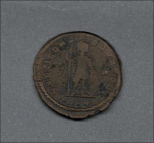 | Moneda de bronce acuñada en la ceca de Treveri, actual Trier o Tréveris |