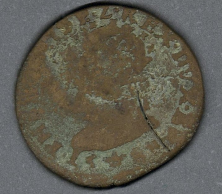 | Moneda de bronce acuñada en la ceca de Maastricht en el Ducado de Brabante, actual Limburgo en Países Bajos |
