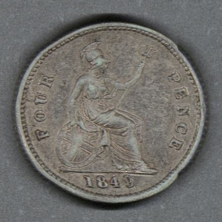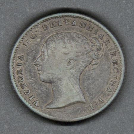Monedas circulantes normales de Reino Unido. En anverso retrato de la reina Victoria joven, sin corona mirando a la izquierda, con leyenda alrededor. En reverso figura de Britannia con tridente en la mano izquierda, escudo con la bandera de la Unión en la derecha, denominación alrededor, fecha debajo.