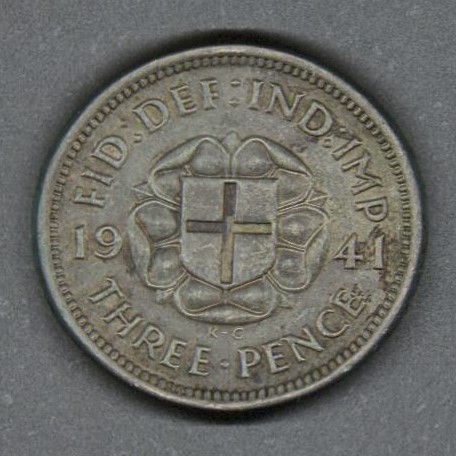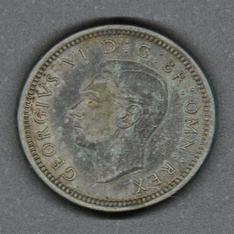 Monedas circulantes normales de Reino Unido. En anverso retrato sin corona del rey Jorge VI, mirando a la izquierda, leyenda alrededor. En reverso cruz de San Jorge sobre rosa Tudor dividiendo la fecha, leyenda arriba, denominación abajo.