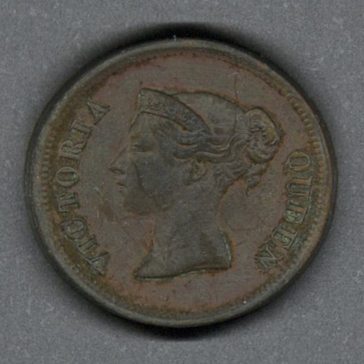 Monedas circulantes normales de Malasia. En anverso retrato de la reina Victoria mirando a la izquierda. En reverso denominación y año de la moneda.