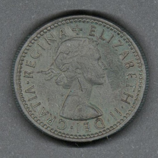 | Moneda de cuproníquel. Casa de moneda Royal Mint (Tower Hill), Londres, Reino Unido (1810-1975). |