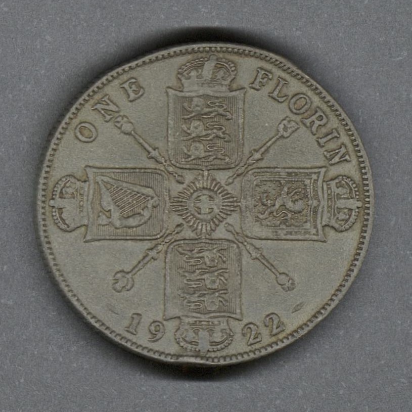Monedas circulantes normales de Reino Unido. En anverso retrato del rey Jorge V sin corona mirando a la izquierda, leyenda alrededor. En reverso escudos cruciformes coronados alrededor de la estrella central de la liga, cetros en los ángulos, denominación arriba, fecha dividida abajo.