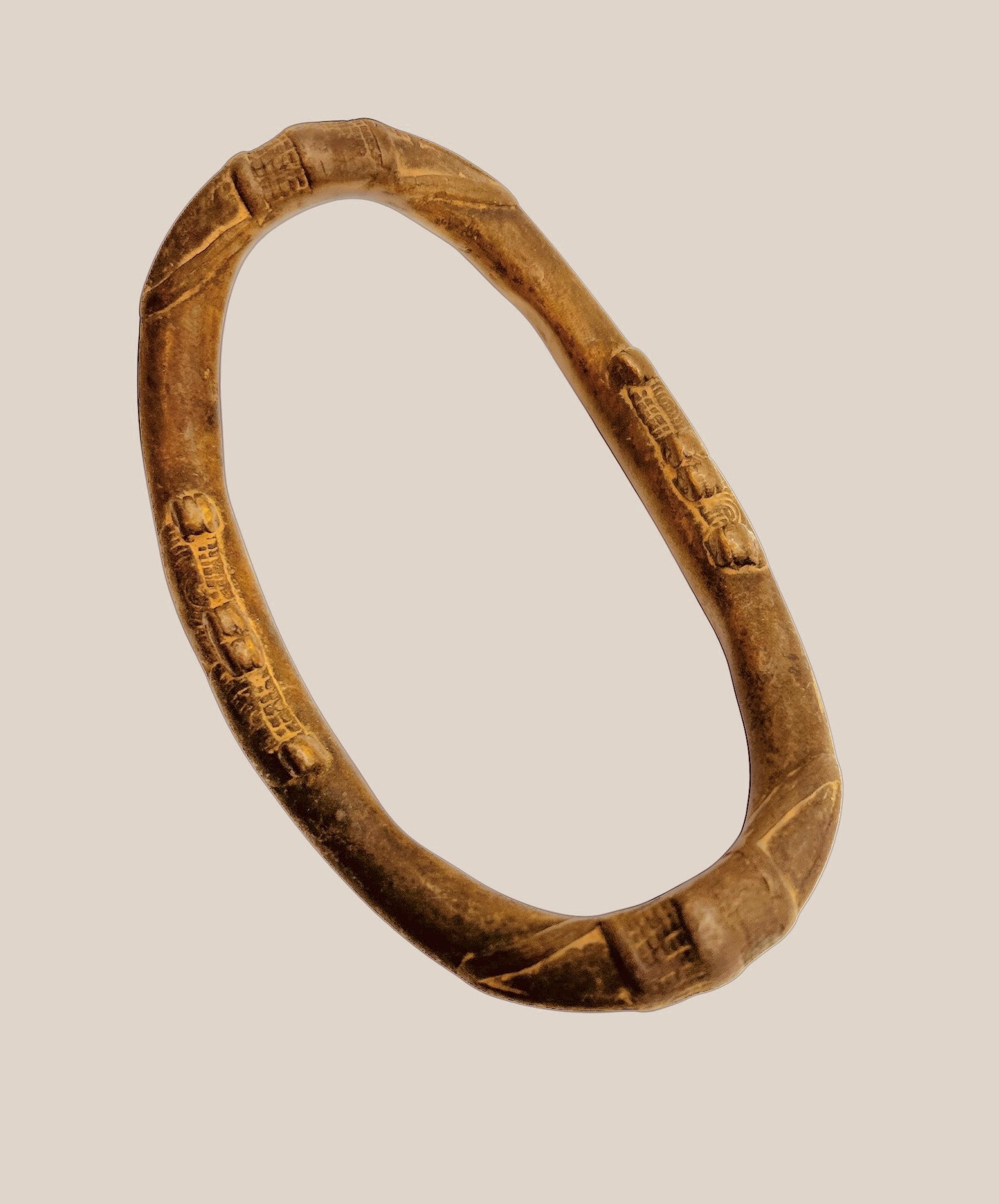 | dc.description.abstract | Brazalete antiguo de latón proveniente de África Occidental. Este tipo de manilla cerrada, tuvo un uso de carácter personal y social, para mostrar el estatus de la persona y solía usarse tanto en la muñeca como el tobillo. | |