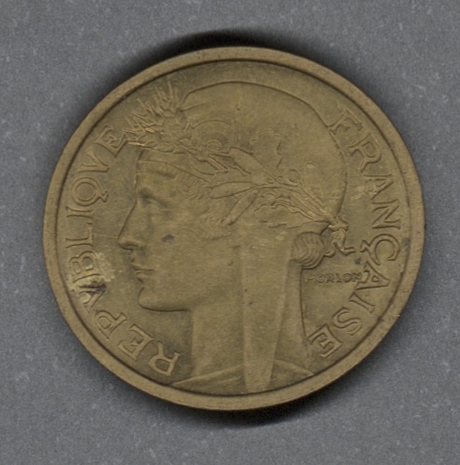 Moneda circulante normal de Francia. En anverso presenta cabeza de Marianne a la izquierda con gorro frigio decorado con una corona compuesta de hojas de olivo, roble y trigo. Alrededor, la leyenda "REPVBLIQVE FRANÇAISE". Al reverso valor decorado a ambos lados por la Cornucopia (o cuerno de la abundancia, rebosante de productos, flores o frutos secos) y la leyenda "LIBERTE-EGALITE-FRATERNITE" sobre el valor. La grabación de ambas caras estuvo a cargo de Pierre-Alexandre Morlon, y el diseño del canto es llano.