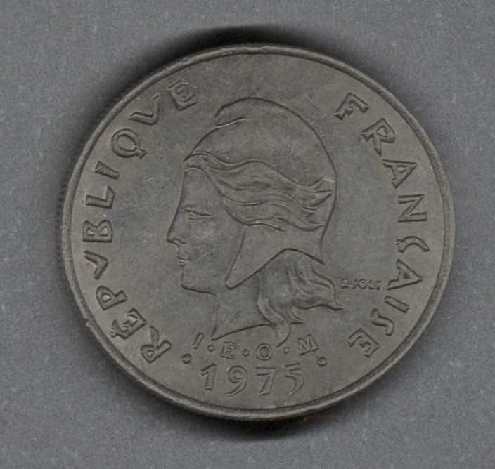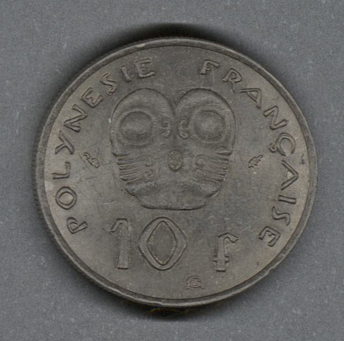 Moneda circulante normal de la Polinesia Francesa, en anverso presenta busto capitoneado de Marianne mirando a la izquierda, rodeada por la leyenda "RÉPUBLIQUE FRANÇAISE" y al final la fecha. Su grabador fue Raymond Joly. Al reverso una máscara tribal sobre el valor, rodeada por la parte superior por la leyenda "POLYNESIE FRANÇAISE". Su grabador fue Aleth Guzman-Nageotte. El diseño del canto es juncoso.