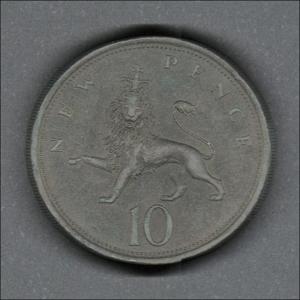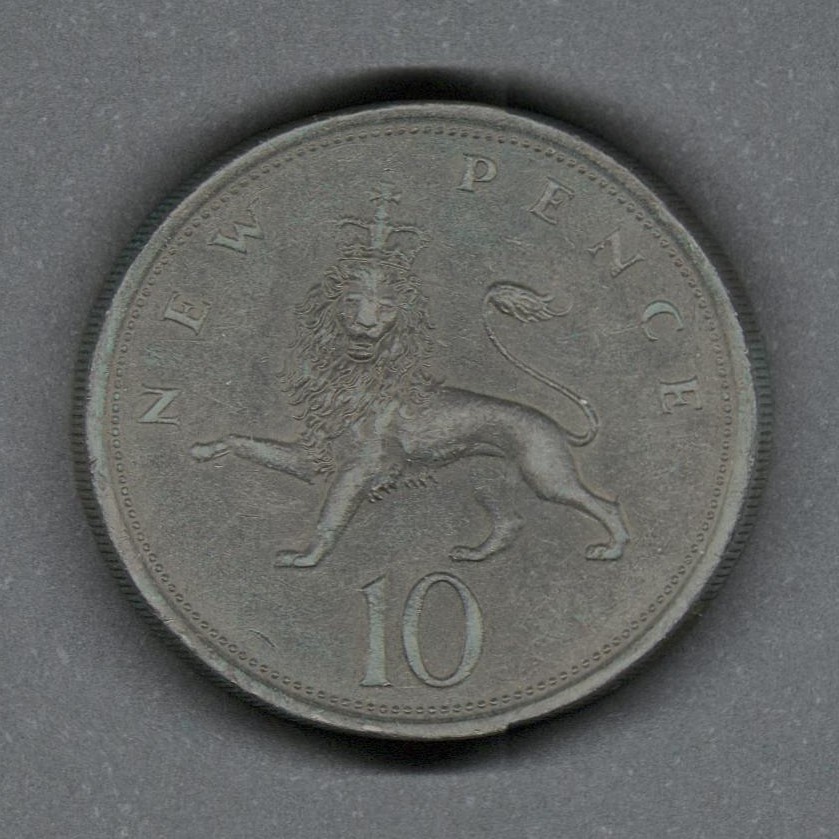 Monedas circulantes normales de Reino Unido. En anverso segundo retrato coronado de la reina Isabel II mirando a la derecha, con la tiara de las Niñas de Gran Bretaña e Irlanda, leyenda alrededor. En reverso parte del escudo de Inglaterra, un león pasante en guardia coronado real, leyenda arriba, denominación abajo.
