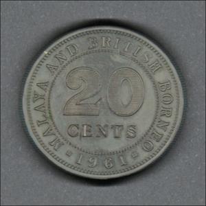 Monedas circulantes normales de Malasia. En anverso retrato coronado de la reina Isabel II mirando a la derecha. En reverso valor dentro del círculo de cuentas.