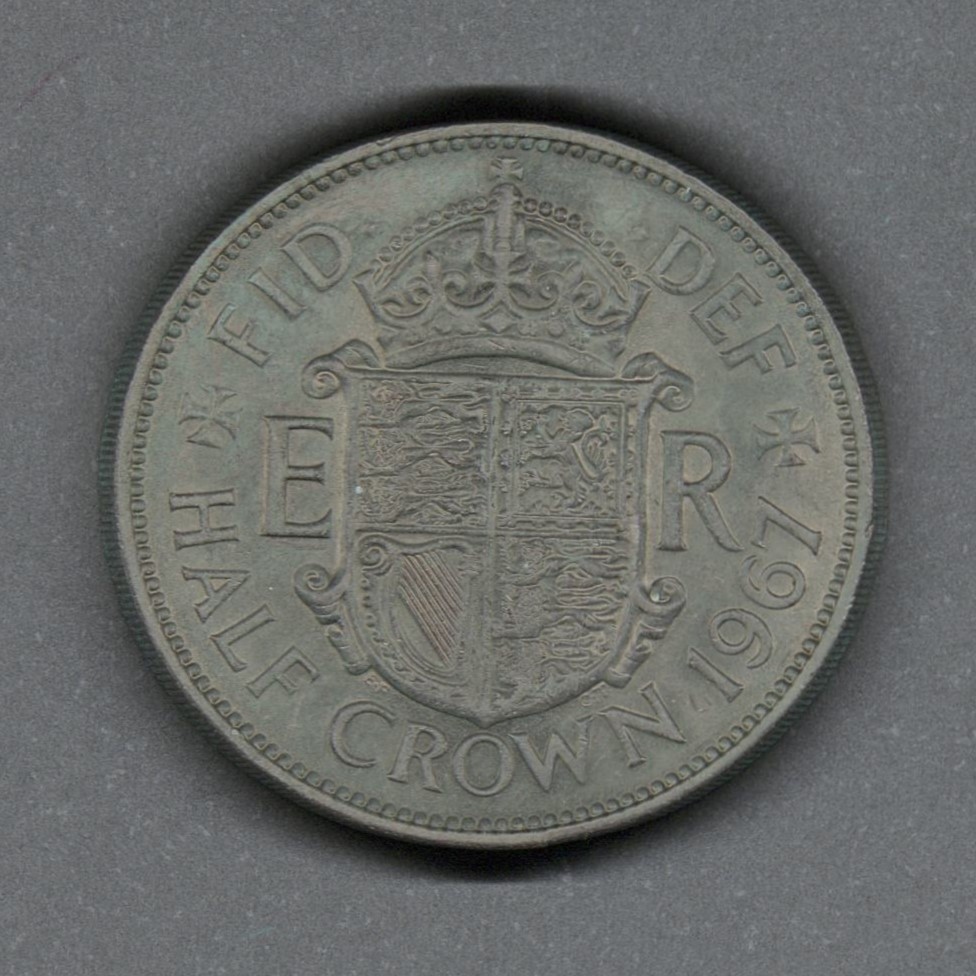 Monedas circulantes normales de Reino Unido. En anverso retrato laureado joven de la reina Isabel II mirando a la derecha, leyenda alrededor. En reverso escudo cuartelado coronado flanqueado por E y R, leyenda arriba, denominación y fecha abajo.