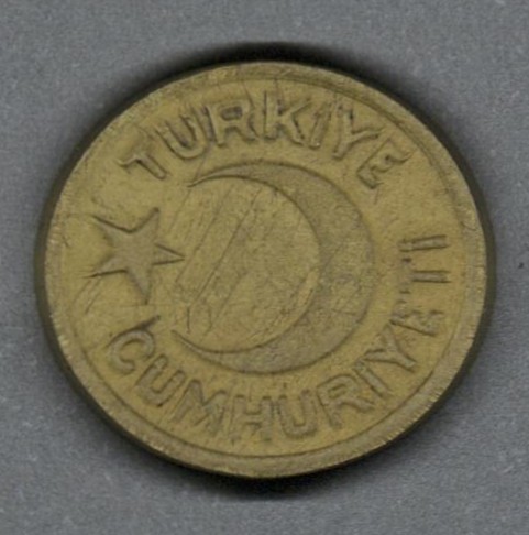 Moneda circulante normal de Turquía, en anverso presenta luna creciente con estrella, rodeada de la leyenda "TÜRKİYE CUMHURİYETİ". Al reverso denominación y año. El grabador de ambas caras fue Ahmet Mesrur Durum, y el diseño del canto es llano.