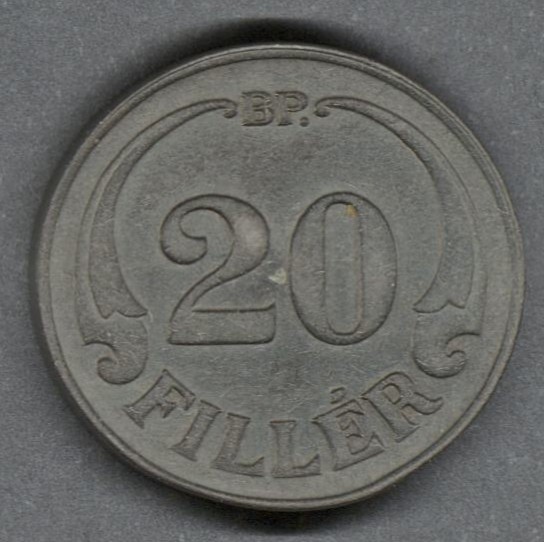 Monedas circulantes normales de Hungría. En anverso corona de San Esteban dentro de un pequeño círculo sobre fondo radiante. En reverso denominación de la moneda.